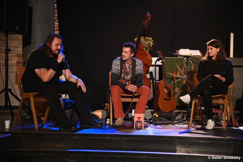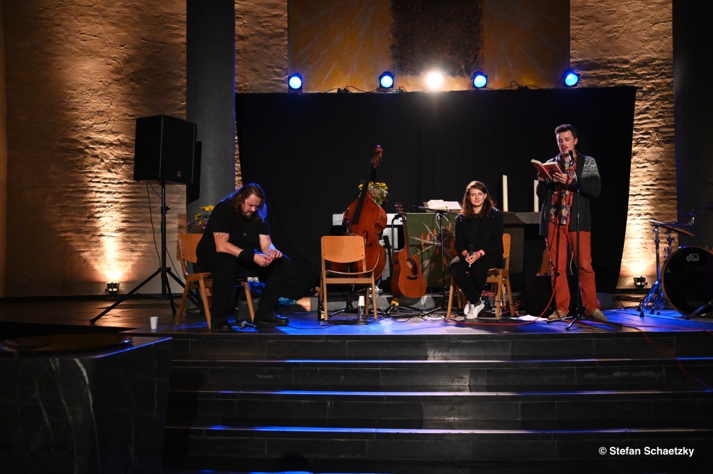 Einige Fotos meiner Lesung aus Ein Vogel ist er nicht bei der 10. Langen Nacht der jungen Literatur mit Saskia Trebing, Martin Piekar und dem Jules Mayfield Trio in der Kreuzkirche Kassel. Aufgenommen von Stefan Schaetzky für das Literaturhaus Nordhessen. Helen MacCormac begrüßte, Sarah Birkenbeul moderierte.