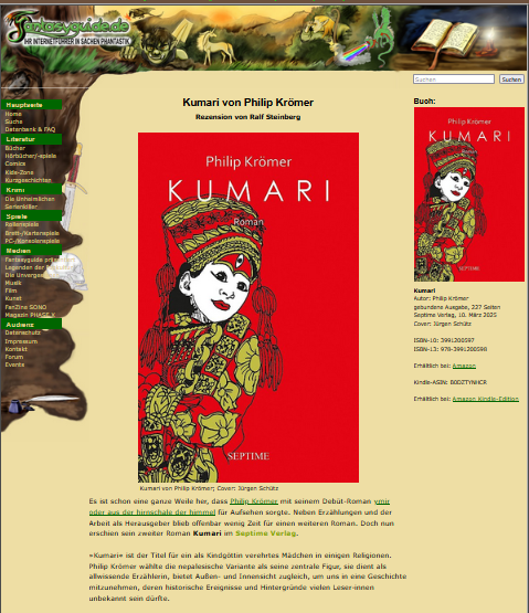 Ralf Steinberg hat die »Kumari« für seinen Blog Fantasyguide.de gelesen und rezensiert.