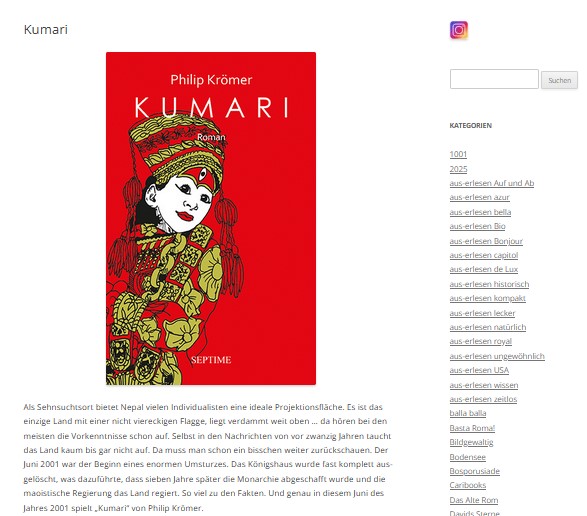 Eine neue »Kumari«-Rezension gibt es auf Karsten Koblos Blog aus-erlesen.de.