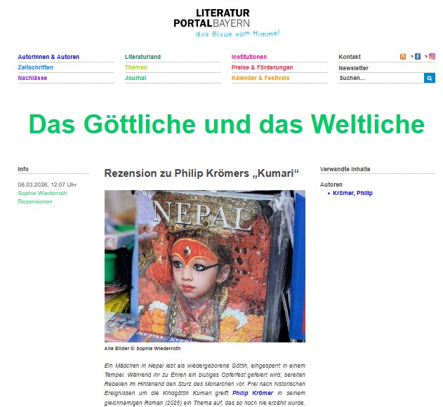 Sophie Wiederroth bespricht »Kumari« für das Literaturportal der Bayerischen Staatsbibliothek.
