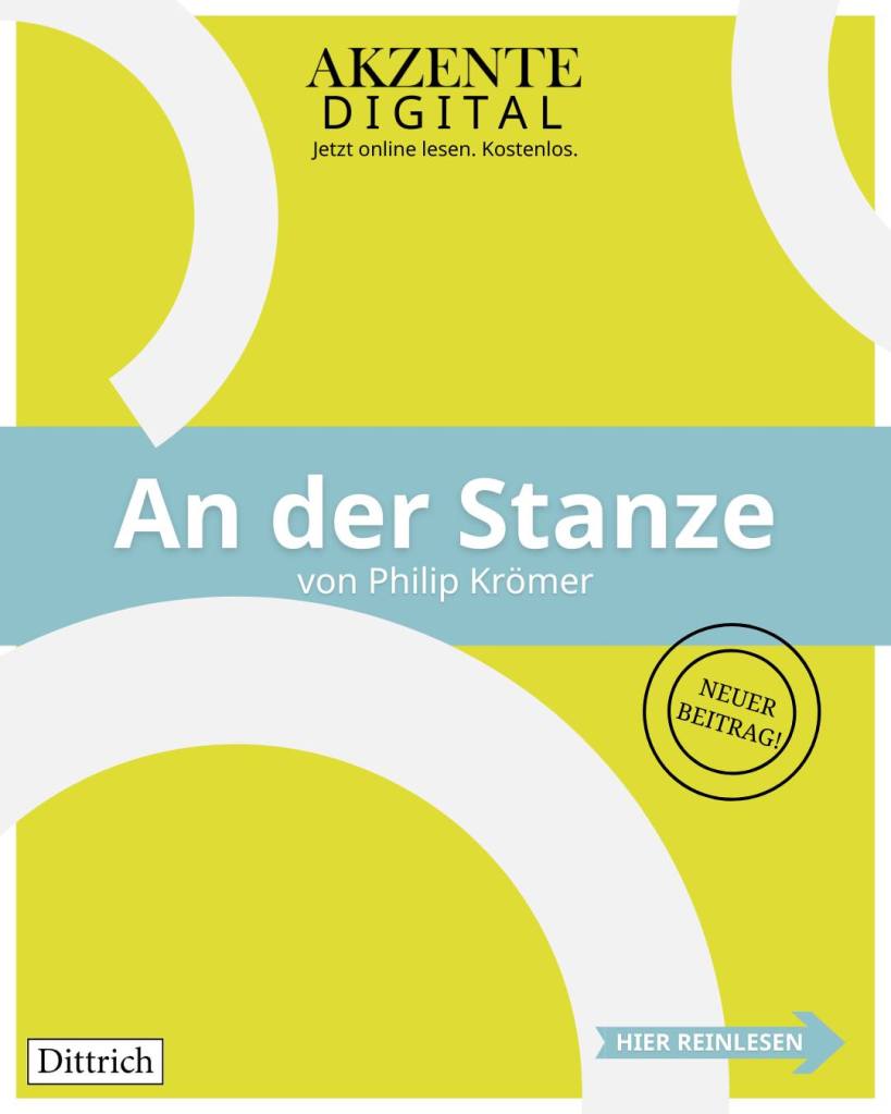 Als Digitalveröffentlichung der AKZENTE – Zeitschrift für Literatur erschien zum Thema Arbeit meine dystopische Erzählung An der Stanze, in der Ideen nicht mehr nur in Köpfen geboren, sondern maschinell erzeugt werden können.